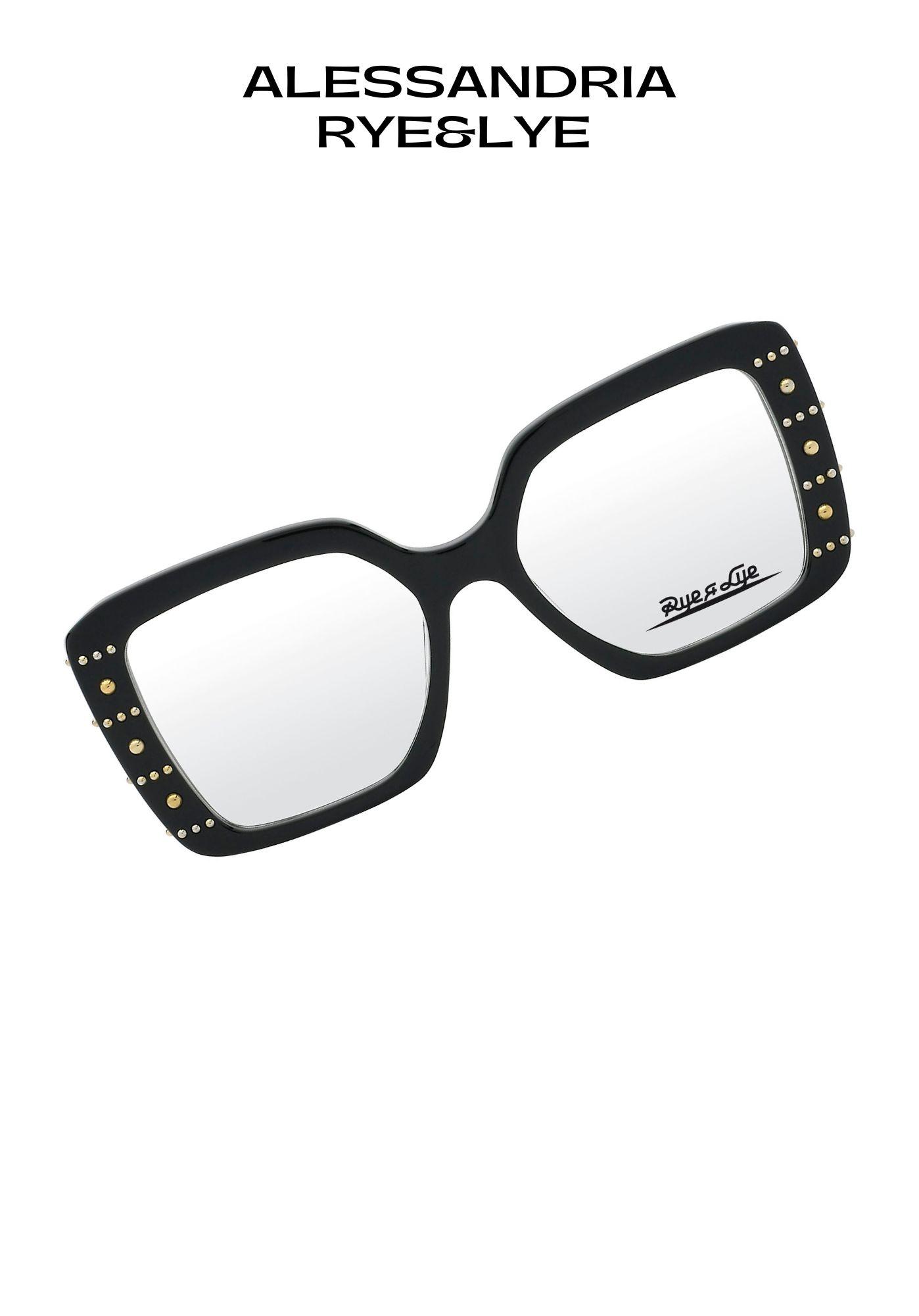 Alessandria by Rye&Lye is a tribute to the rock spirit, with its bold black acetate frame featuring a wide design and side studs that accentuate its rebellious attitude and urban-underground style.