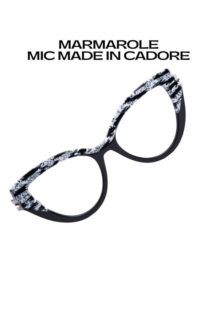 The Marmarole model from the Mic Made in Cadore collection, inspired by the Cadore mountains, combines style and personality with two distinct colors. The black-and-white striped front evokes nature and dreams, making it ideal for those looking for eye-catching eyewear.