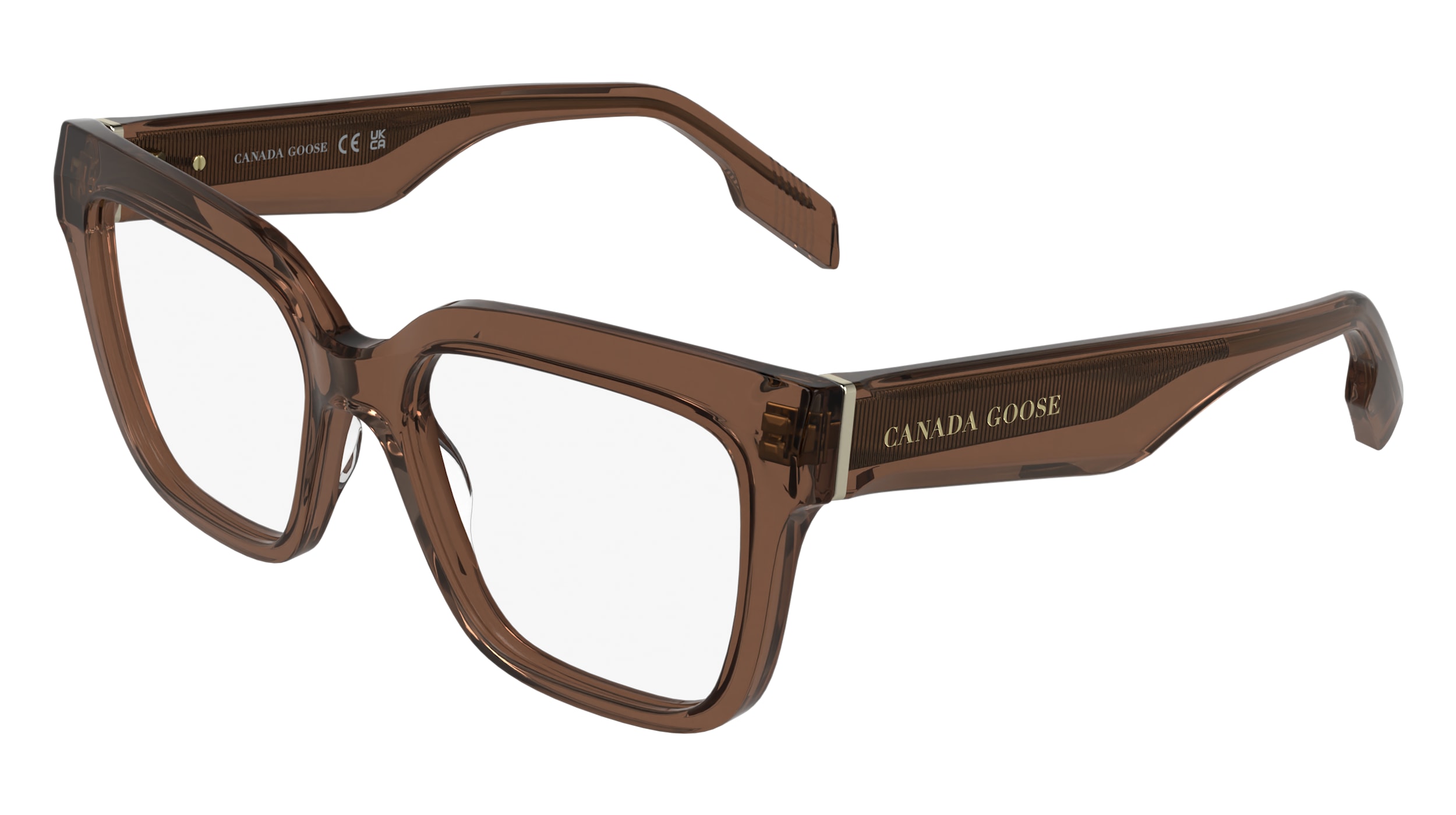 Oversized yet easy-to-wear, this classic feminine square shape is inspired by glaciers and the beauty of natural elements. Entirely designed in Acetate Renew™, this optical style is offered in four transparent colorations, complemented with an elegant striped core wire echoing the grosgrain texture found in Canada Goose outerwear. The extended Canada Goose logo is featured on both temples to complete the look.