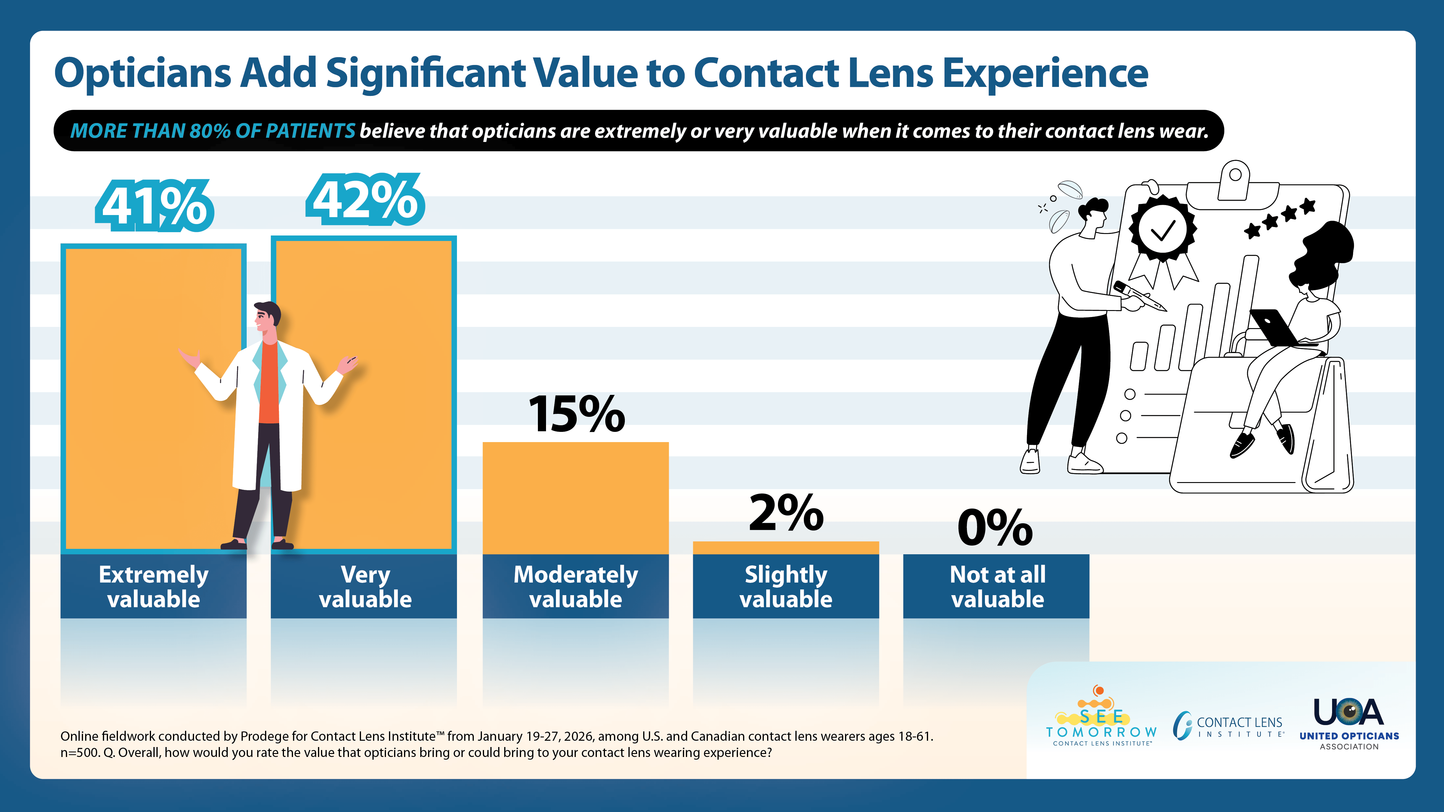 The January 2026 survey of U.S. and Canadian contact lens patients indicated that 89% believe opticians are important in helping to achieve the best vision possible, with 83% saying opticians were extremely or very valuable to their contact lens-specific experience.
