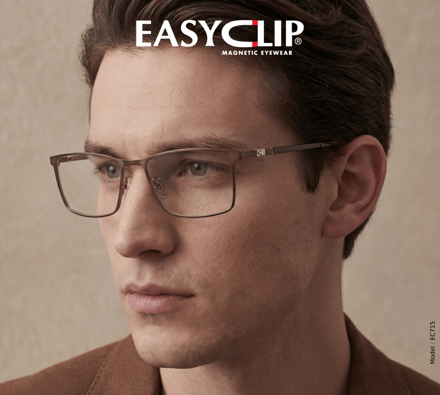 New and undeniably clean. EasyClip® EC715 is a stainless steel frame with a clean rectangular silhouette – modern, confident, and quietly premium. The lines are crisp, the profile is refined, and the look feels intentional from the first wear.