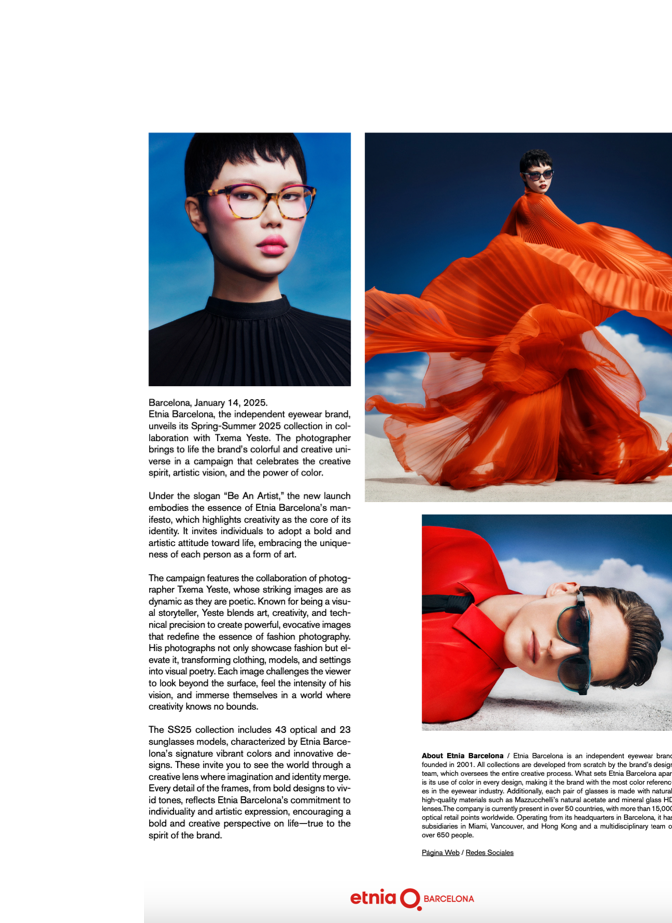Etnia Barcelona Presents Its Spring-Summer 2025 Collection Through the Lens of Txema Yeste Jan 16, 2025 | Eyewear Get the latest Optical News delivered to you. Click here to subscribe to our FREE print magazine and weekly newsletter