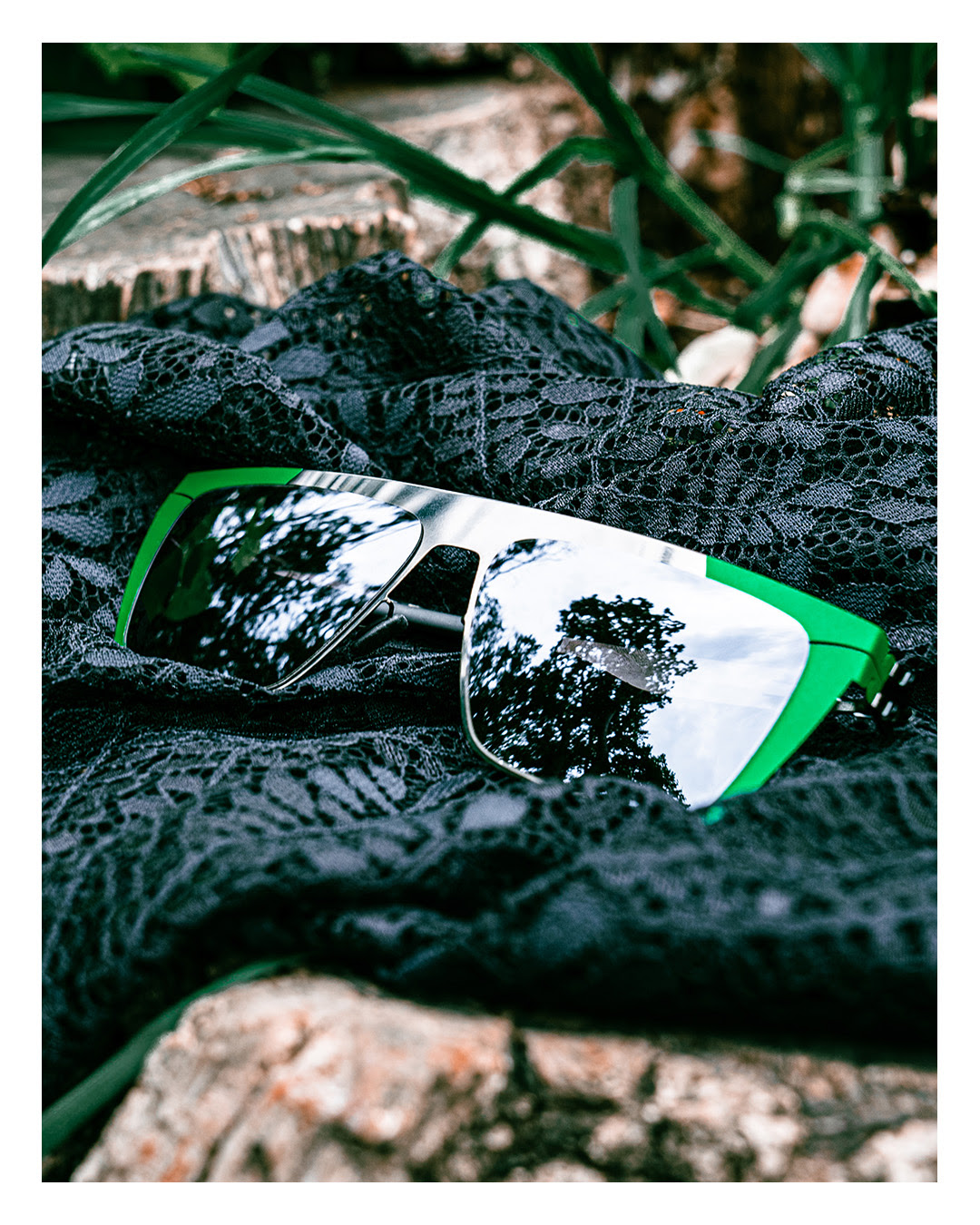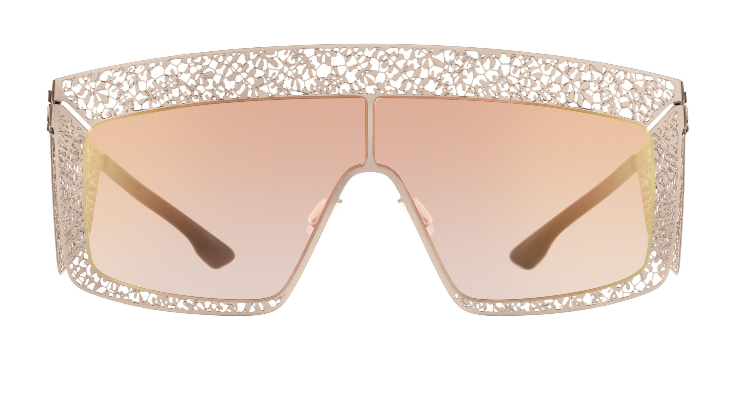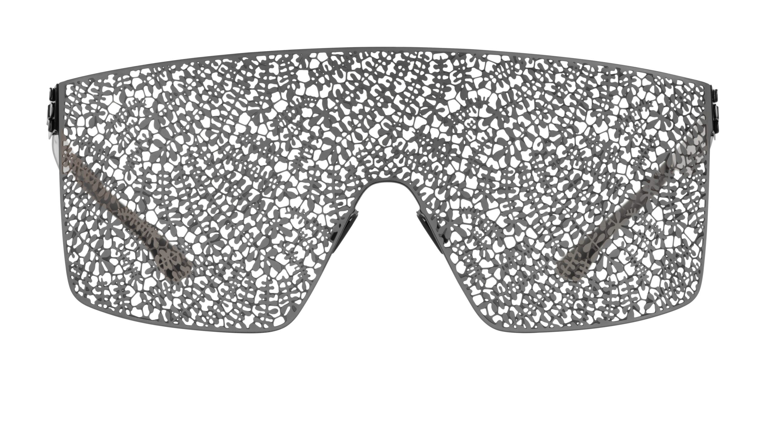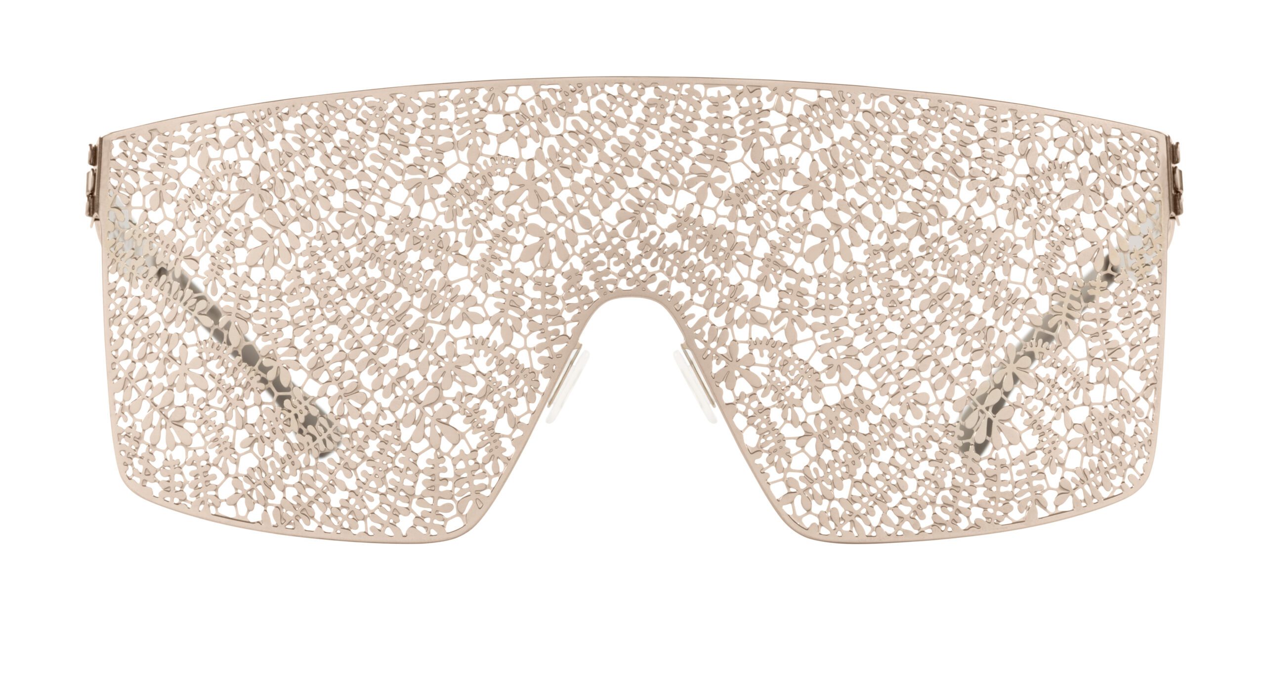 In this collection, there are five different styles, three being the Bibhu 01, Bibhu 02, and Bibhu 03. The family of three all tie in colors or lace patterns that were featured in Bibhu’s September collection, creating the ideal balance of feminine elegance and intelligent design. Additionally, the collection features showpieces: The Veil and Lace Visor. These highly anticipated glasses are unique as they offer a more impactful design that highlights the lace sequence incorporated throughout Bibhu’s clothing.