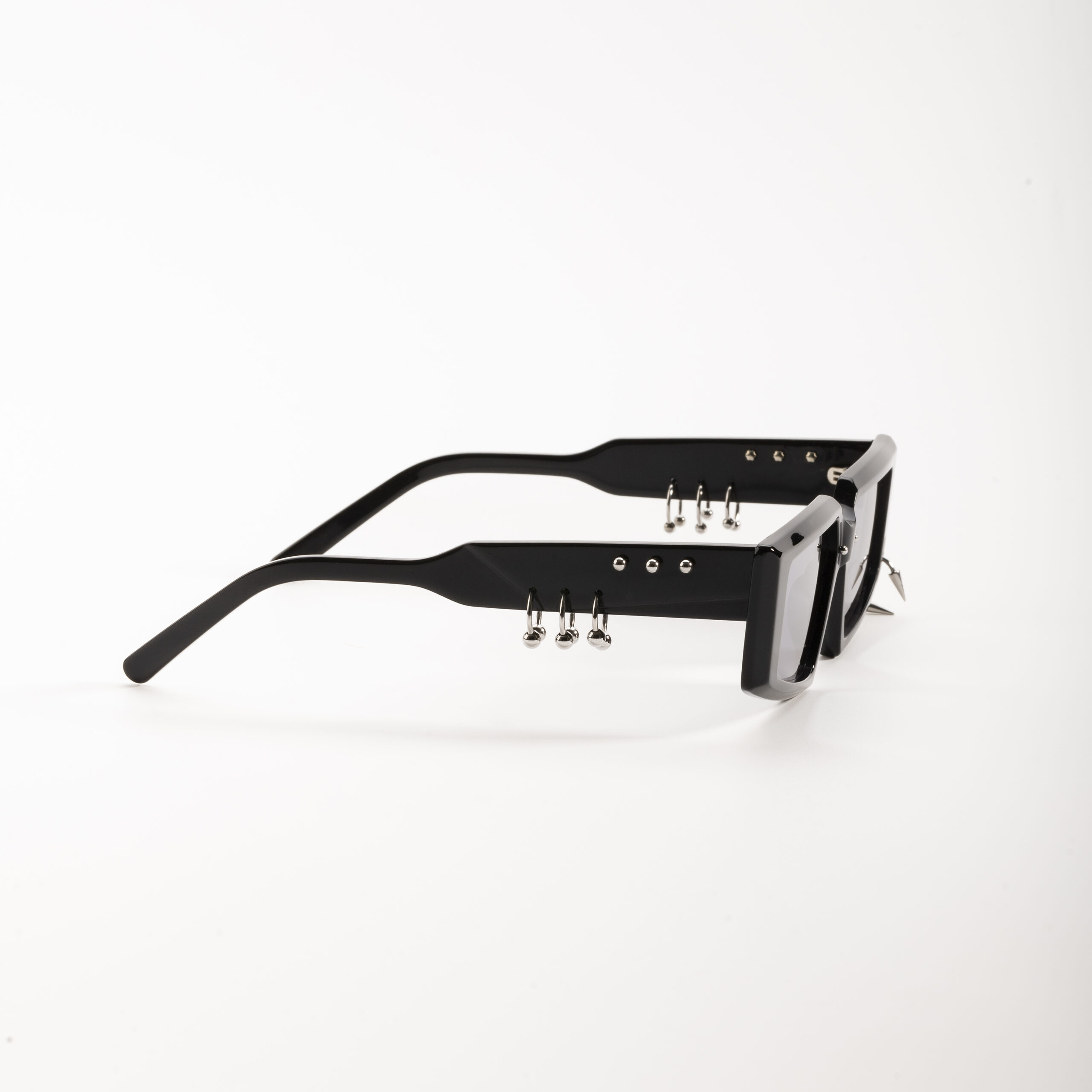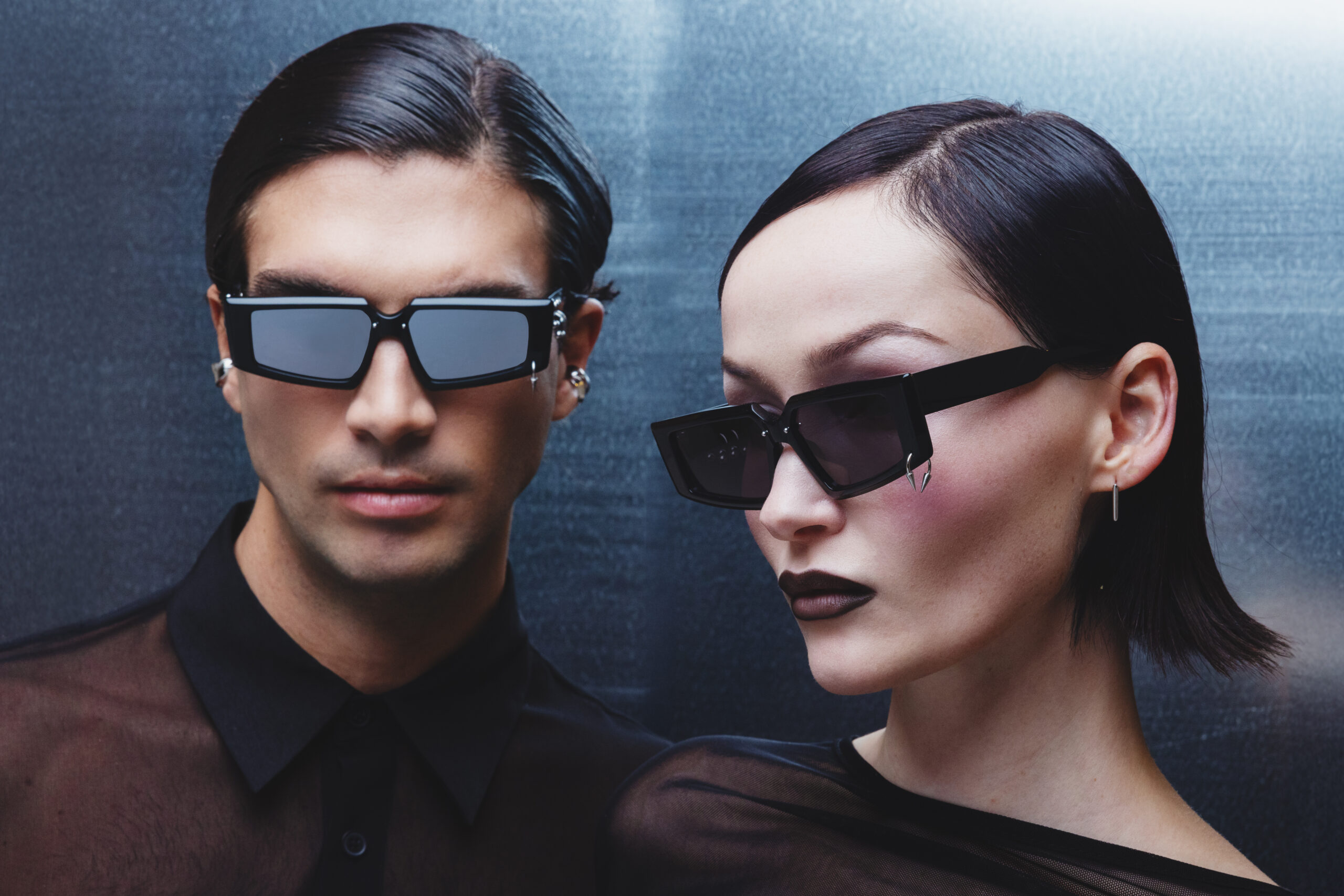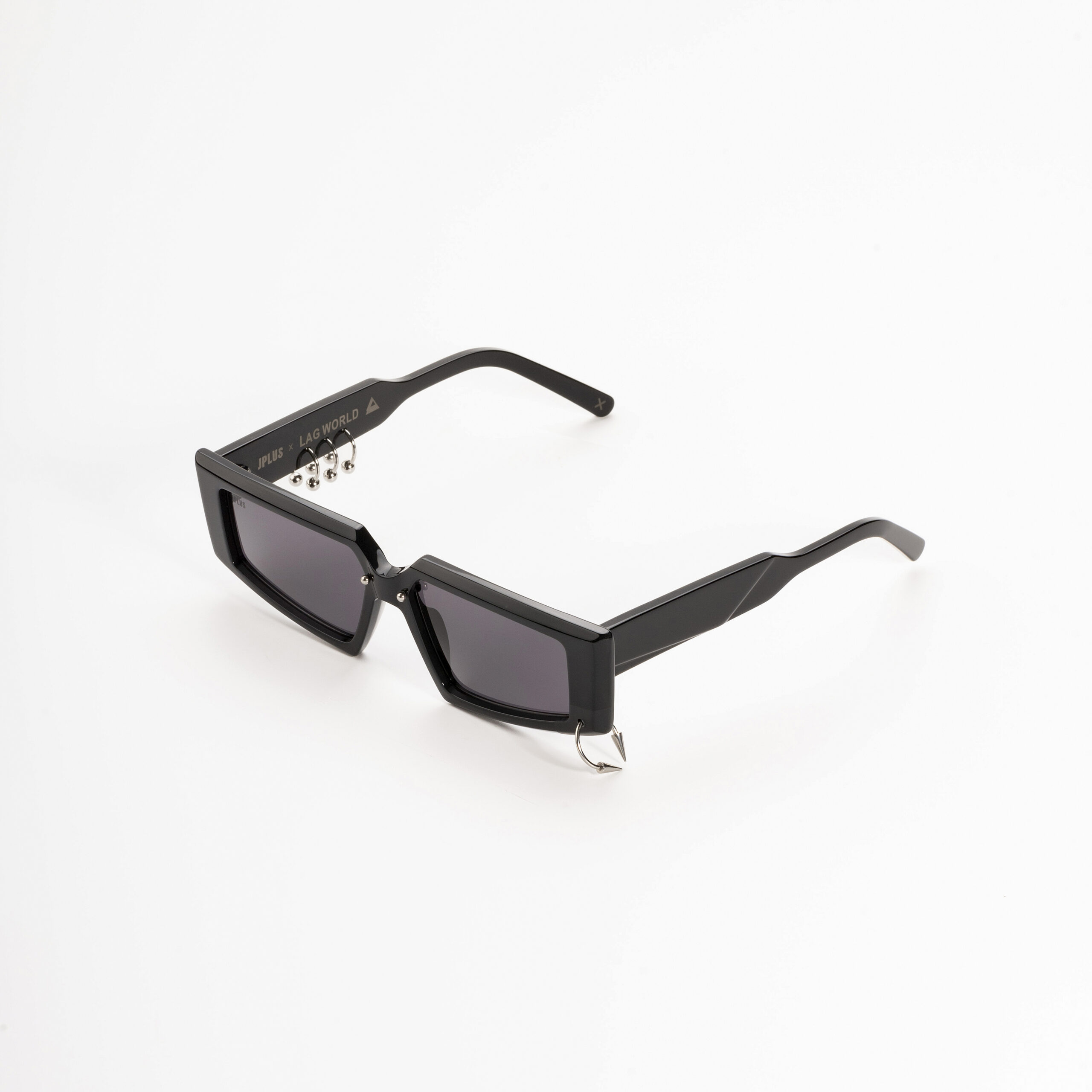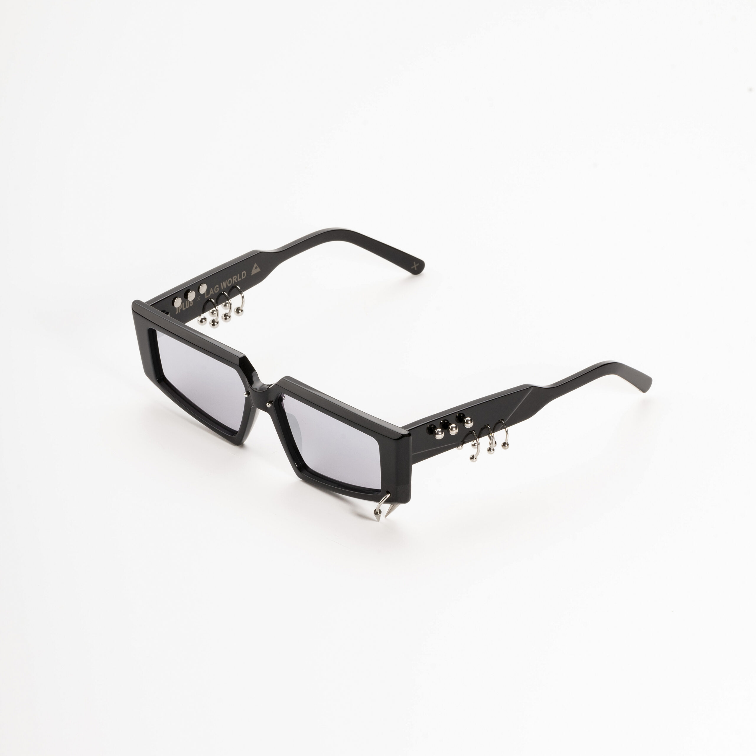 The “Jones LAG” sunglasses make a bold statement, defining the face while embracing a new fashion trend: the freedom to express oneself. Entirely genderless and versatile in style, it boasts minimal, angular shapes paired with high-tech mirrored lenses. The classic black acetate of JPLUS is enhanced by silver steel piercings on the front and temples, a signature of LAG World’s style—distinctive and sophisticated, yet never excessive. A contemporary accessory that is both transgressive and elegant, rock and chic, it’s perfect for “dressing up” one’s individuality on any occasion. The desire of JPLUS to subvert the rules of style while preserving the highest quality of Made in Italy eyewear, combined with its focus on the style of the “Millennials Illuminati”, is the cornerstone of this collaboration. This synergy with LAG World—a young, rising brand of jewelry and accessories constantly seeking the intersection of Millennial and Gen Z interests and emotions—creates a shared vision. This sentiment, central to the DNA of both brands, is fully reflected in the “Jones LAG” model, a celebration of individuality and contemporary style.