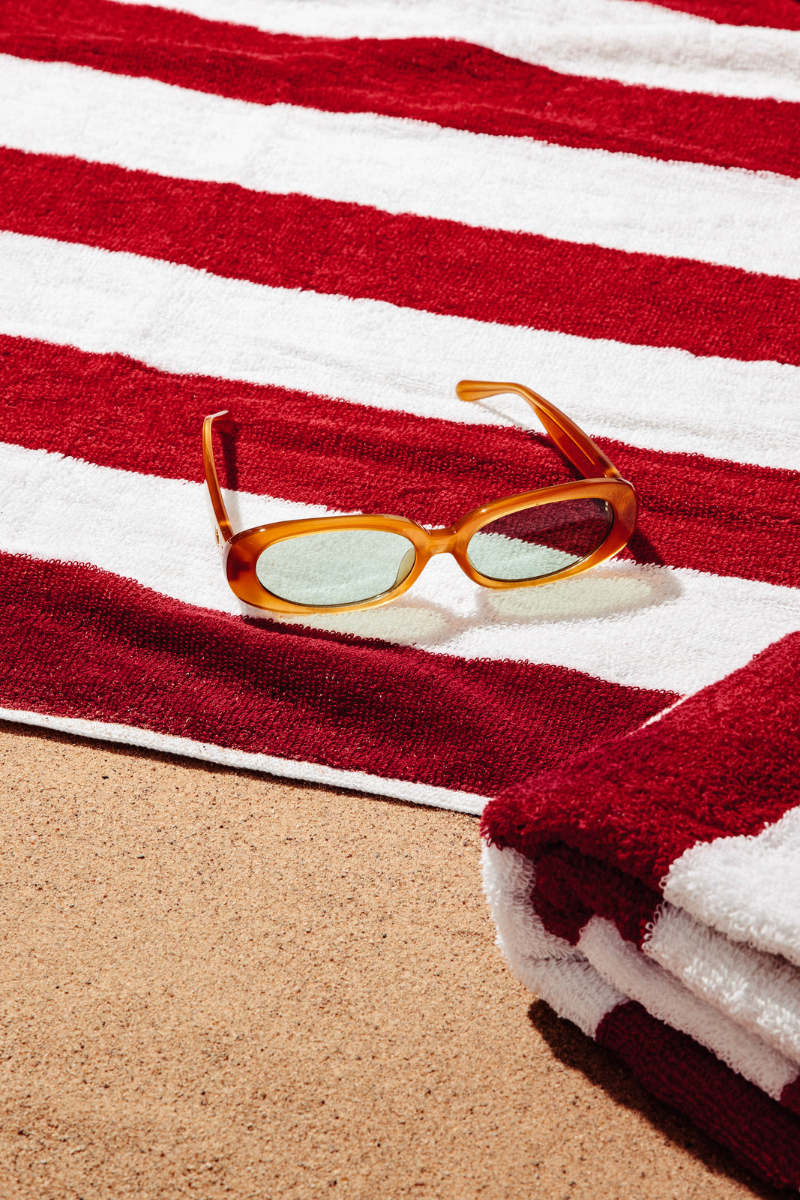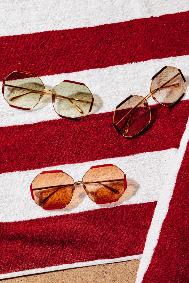 Playing with classic summer codes, the two iconic sunglass shapes Cara and Margot have a clear 1970s feel. Each sunglass style comes in three colours, all of them being an ode to the 70s and its aesthetic, closely linked to the South of France with its sunny beaches, crystal blue waters, and bright, vivid orange sunsets. This is manifested throughout the collection with terracotta matched with orange gradient lenses, honey with green lenses and warm chocolate brown with brown lenses, bringing us back to an ideal past, with a refreshing, contemporary touch. The sunglass styles come in elegant red and white striped linen packaging, especially designed for these unique and collectible styles, evocative again of the theme of the French Riviera and a chic French style.