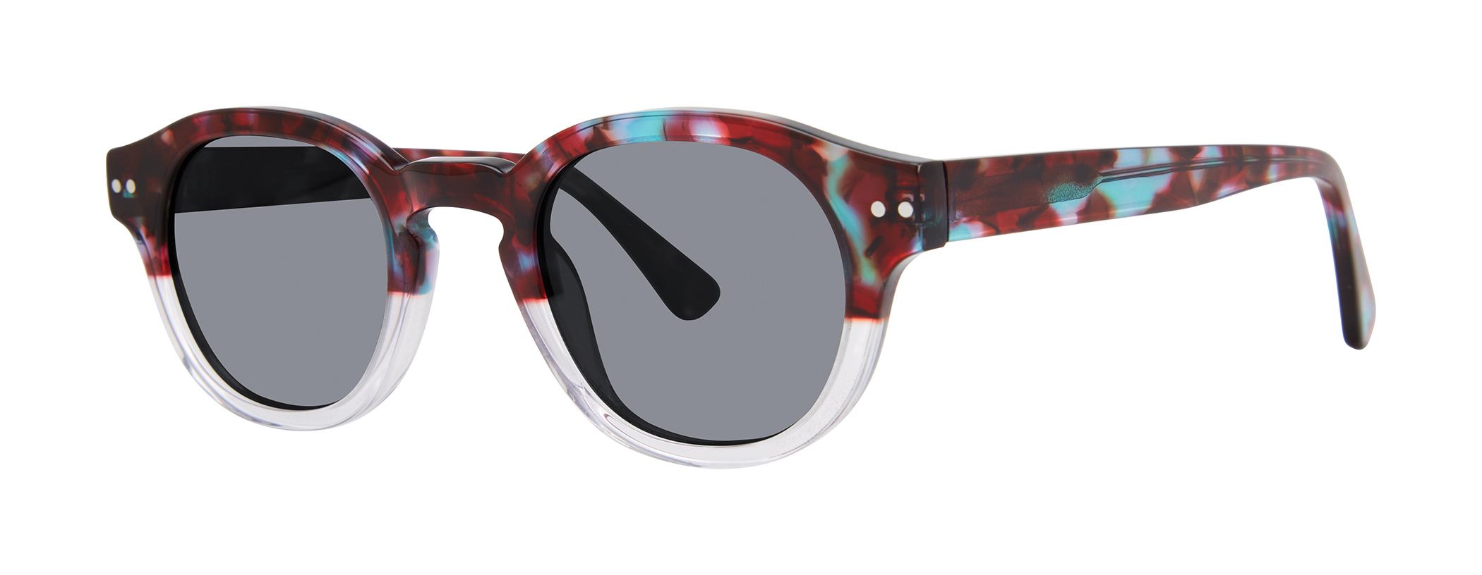 - Marbella – Features: eye-catching chunky two-toned round frame, keyhole bridge, handmade acetate, metal trim. Colors: black/grey crystal, purple marble/crystal. Size: 47-25-145.
