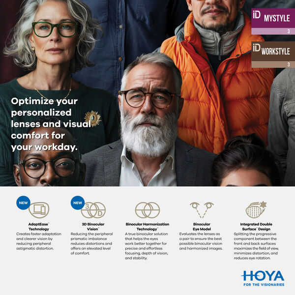 Ophthalmic lens technology leader HOYA Vision Care announced the Canadian launch of iD MyStyle® 3 and iD WorkStyle® 3 with AdaptEase™ Technology as the newest progressive lenses available for eye care professionals (ECPs) nationwide to order today.