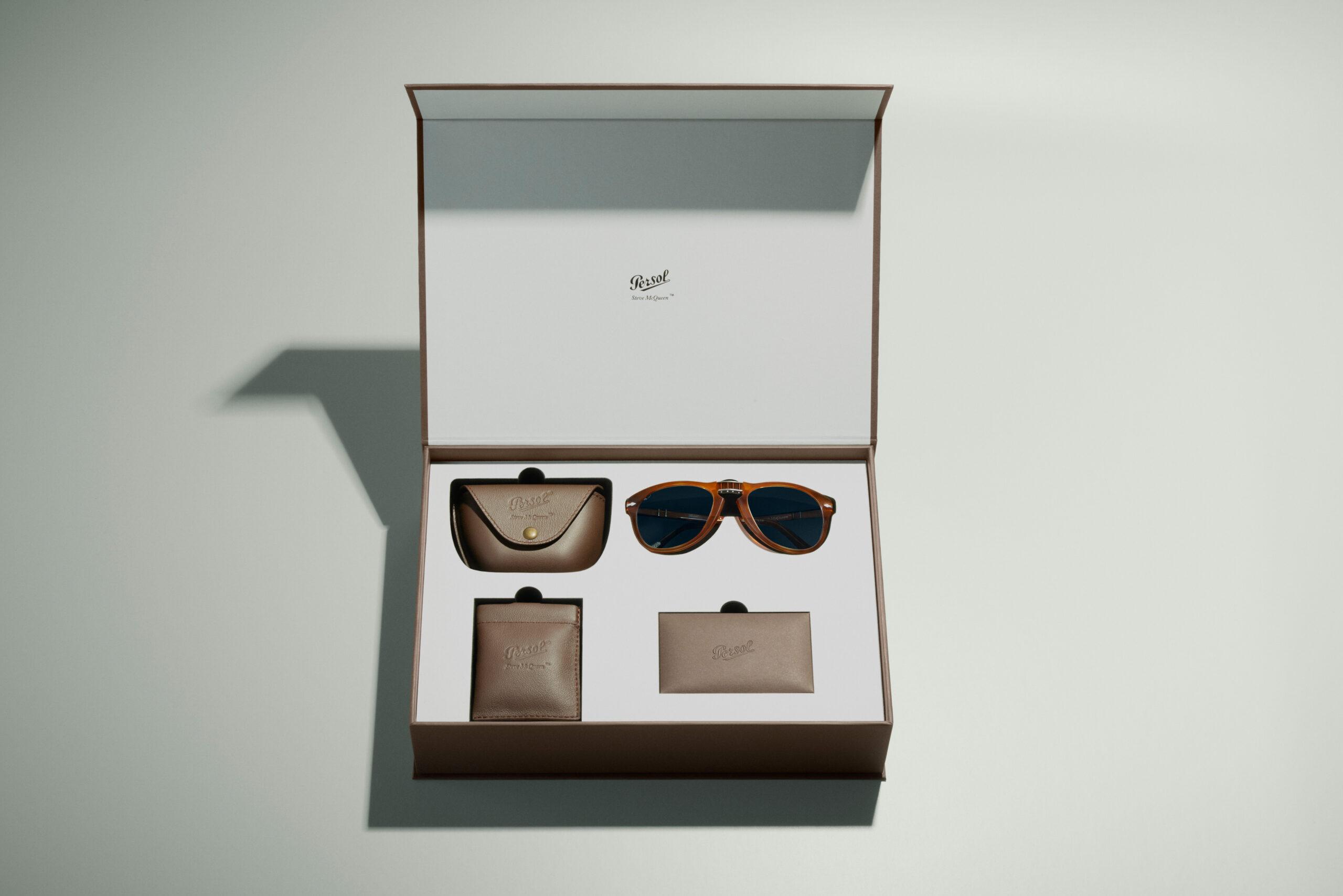 To complement the limited-edition release, Persol has created a sleek, minimalist collector’s box designed to house a curated selection of refined accessories. The set includes a compact, foldable glasses case and a matching cord with its own dedicated leather pouch—both crafted in leather and embossed with the Steve McQueen™ logo. Completing the ensemble are a premium paper pouch for the microfibre cloth and a vintage-style envelope containing rare archival materials that pay tribute to Steve McQueen’s legacy.