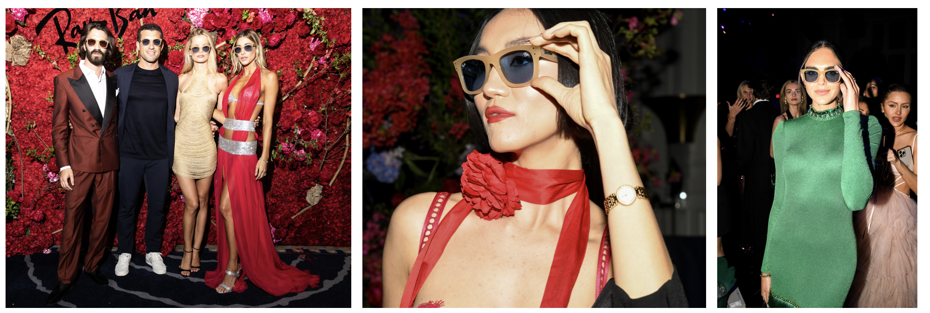 The star-studded affair kicked off at Casa Cipriani which was transformed into a vision of midnight in the garden of good and evil. Met Gala guests including Lana Del Rey, SZA, Lizzo, Jaden Smith, Sam Smith, FKA Twigs, Odell Beckam, Joan Smalls, Evan Mock, Camilla Cabello arrived in their “The Garden of Time” party couture. There was no shortage of celebrities including Ray-Ban President Leonardo Maria Del Vecchio and fiancé, model and actress Jessica Serfaty, Emily Ratajkowski, Ivy Getty, Gabrielle Union, Lewis Hamilton, Winnie Harlow, Jodie Turner-Smith, Dwayne Wade, Dove Cameron, and more. Guests took turns taking selfies on the stunning floralscape step and repeat as they tried on the Ray-Ban Reverse sunglasses etched with “The After” on the lenses.