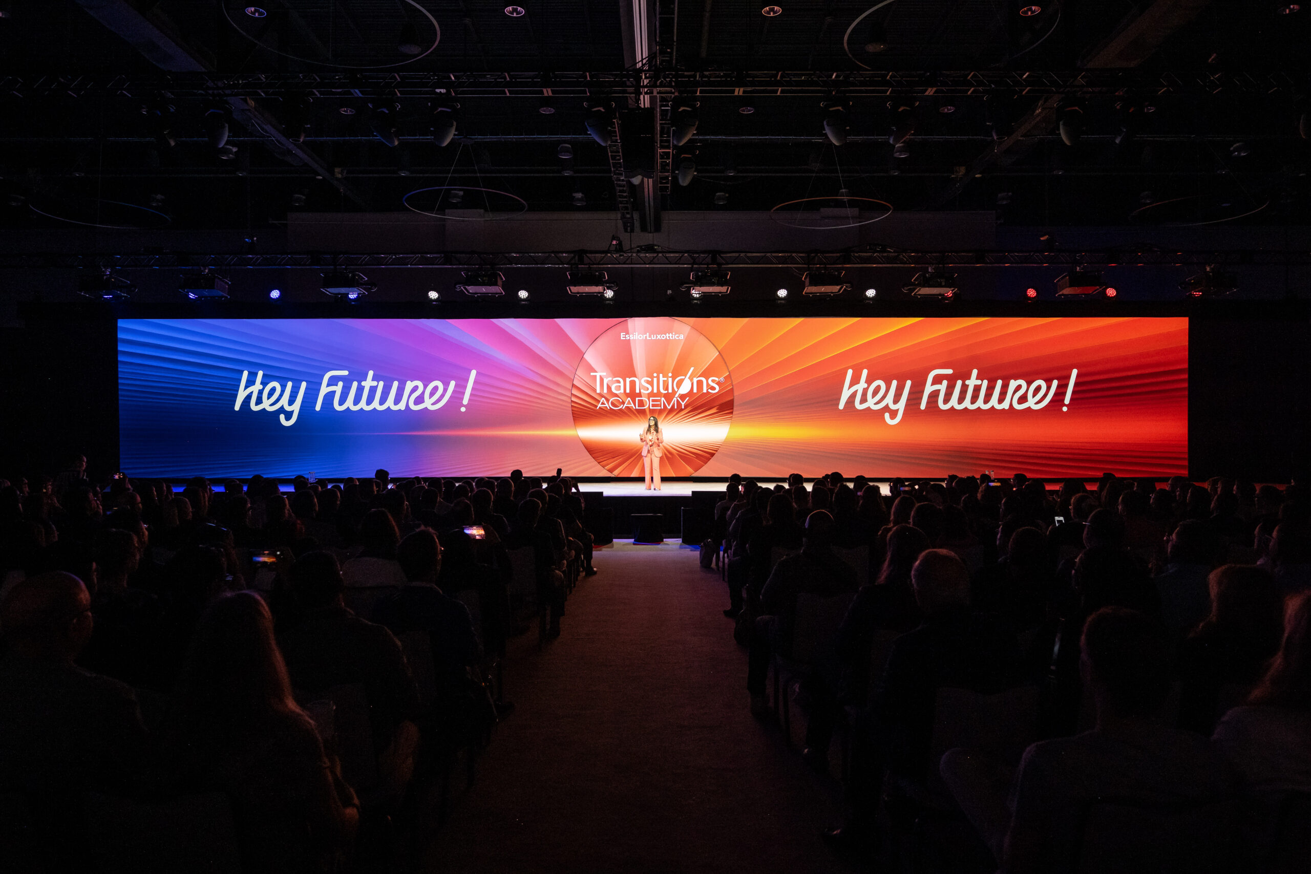 Held at the JW Marriott Grande Lakes, the two-day event, themed “Hey Future!” welcomed over 1200 industry professionals from 56 countries to delve into the role of Transitions® at the heart of this transformation. Bringing together renowned professors from Eye & Health Care, world-class EssilorLuxottica leaders and visionary innovators, this event explored how new technologies are shaping the future of vision.