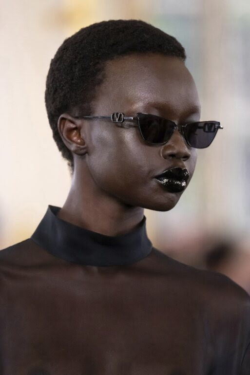 Black can challenge and explode stereotypes – as Baudelaire intimates, black holds within itself its own democracy. Day and evening blur together, precious silhouettes and embellishments are given new reality, relatability. As you can say ‘Rosso Valentino’, we may say ‘Noir Valentino’.