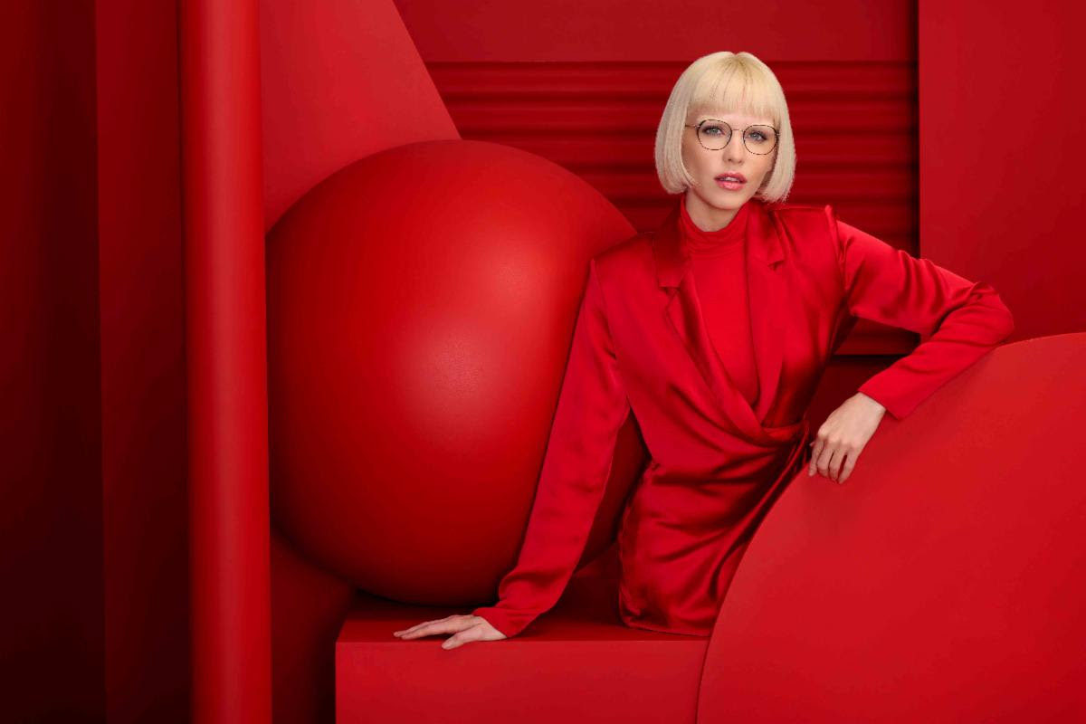 The new campaign is set in a red room filled with red geometric objects for a striking, monochromatic look. The red wardrobe with hints of black and white and mixed materials add texture to the polished looks. “The campaign focuses on the brand’s signature red color. Highly stylistic yet minimalistic in nature, this concept emphasizes the clean lines of the simple setting, accentuating the frames design”, says Alexis Nyiro, Director of Marketing and Product Development at WestGroupe.  Images from the new campaign will be reflected in the 2023 KLiiK merchandising material and WestGroupe website and will also be available for COOP use by KLiiK retailers.
