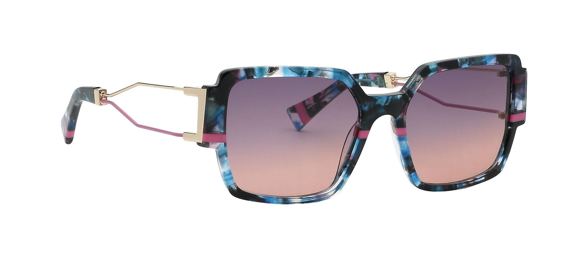 Rigel is a city in an indeterminate future where parallel worlds and different chronological planes exist, run by a positronic brain and driven by intolerance between the inhabitants of the city center and the periphery. It is also the flagship of the collection, colorful and irreverent, with a double temple, a round shape and side-opening lenses: a punk soul in a pop art body!